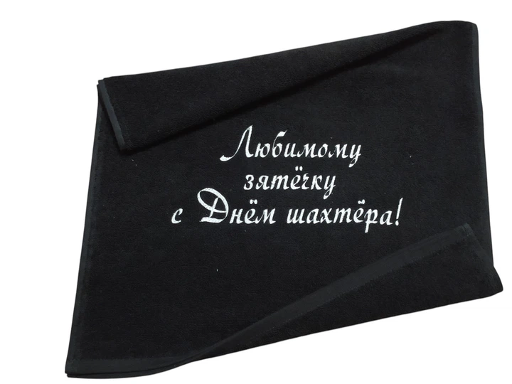 Рушник з вишивкою махровий для обличчя 50*90 чорний шахтарю гірнику зятю 00320