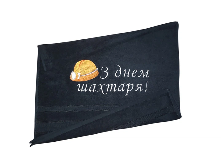 Рушник з вишивкою махровий для обличчя 50*90 чорний шахтарю гірнику 00393