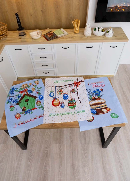 Рушники вафельні "Українська Пасха" (блакитні) 3шт. 60х47 см