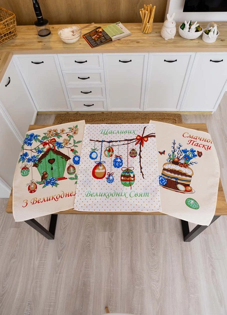 Рушники вафельні "Українська Пасха" (жовті) 3шт. 60х47 см