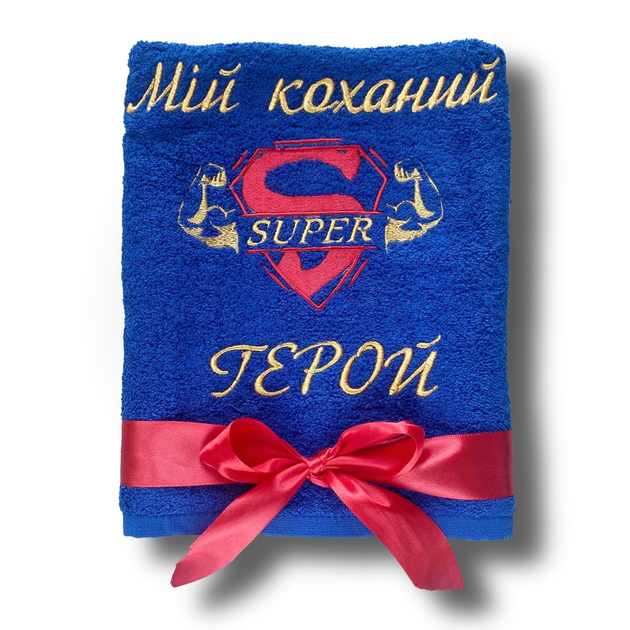 Рушник бавовняний 140*70 з вишивкою "Мій коханий Супер Герой"