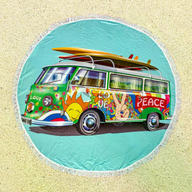 Пляжний рушник килимок покривало Мікроавтобус круглий мікрофібра махра 150 см з бахромою