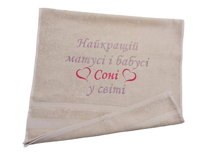 Рушник з іменною вишивкою махровий для обличчя 50*90 бежевий бабусі Софія 04240