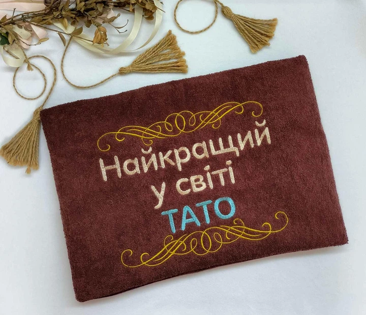 Махровий рушник з вишивкою "Найкращий у світі тато" 50х90 см коричневий Kuzka