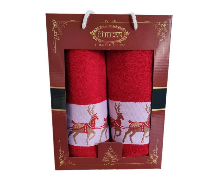 Набір новорічних рушників Gulcan 50x90+70х140 Merry Christmas Deer Red