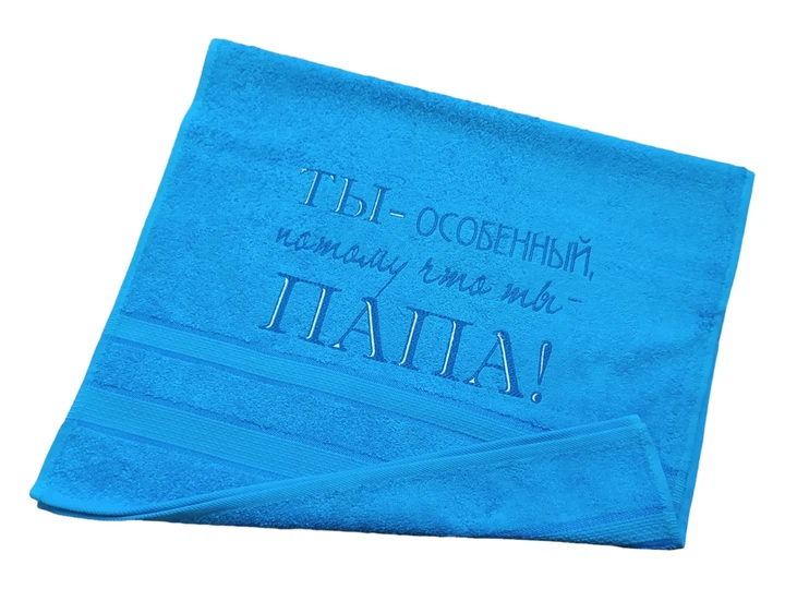 Рушник з вишивкою махровий для обличчя 50*90 блакитний татові 00090