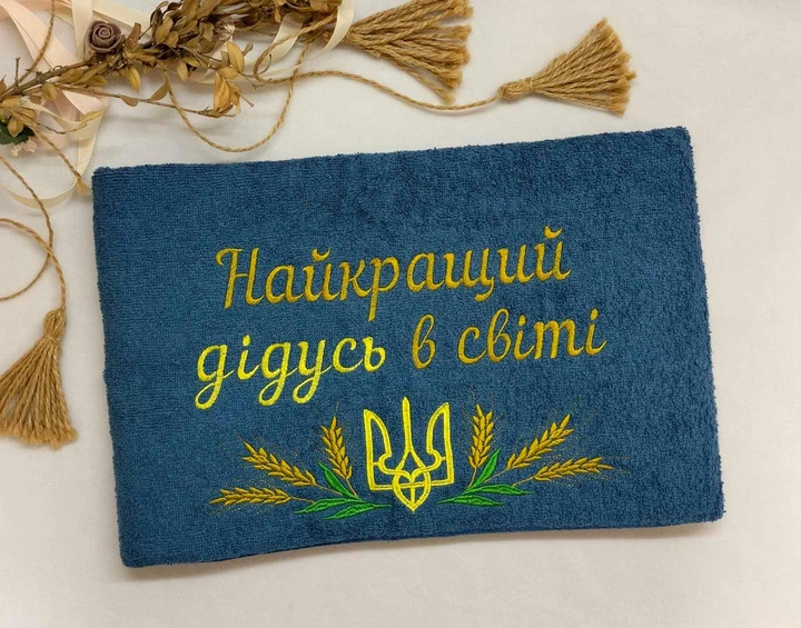 Махровий рушник з вишивкою "Найкращий дідусь в світі" 50х90 см джинс