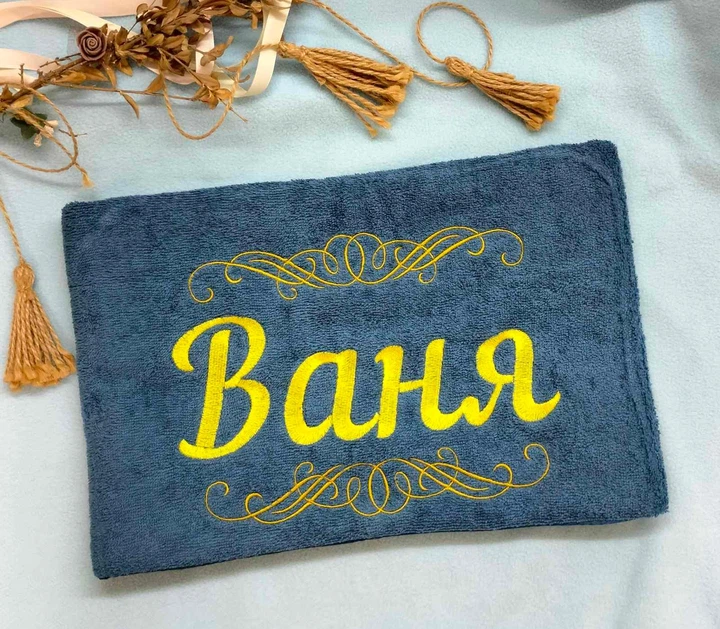 Махровий рушник з вишивкою іменний "Ваня" 50х90 см джинс Kuzka