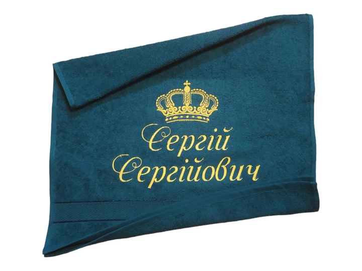Рушник з іменною вишивкою махровий для обличчя 50*90 зелений Сергій 03920