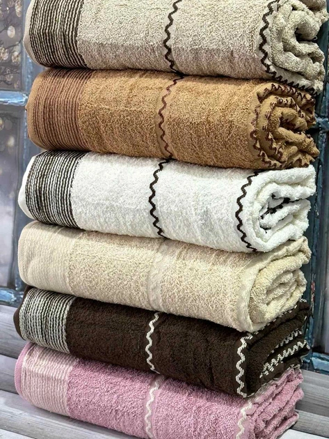 Набір рушників Sweet dream Zig zag kahve100х150см 6 шт Бавовна Бежевий-коричневий-білий-рожевий. Sweet dream Туреччина.