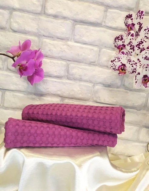 Набір 2 шт рушник вафельний для лазні, сауни, бані басейну та ванної кімнати 48х26 см, насичений бузок (5743-2141)