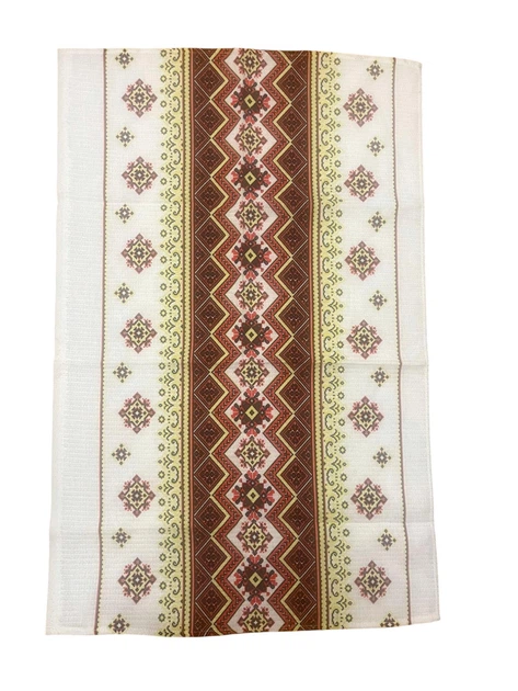 Рушник кухонний вафельний бавовняний 75х45 см Червоно чорний орнамент