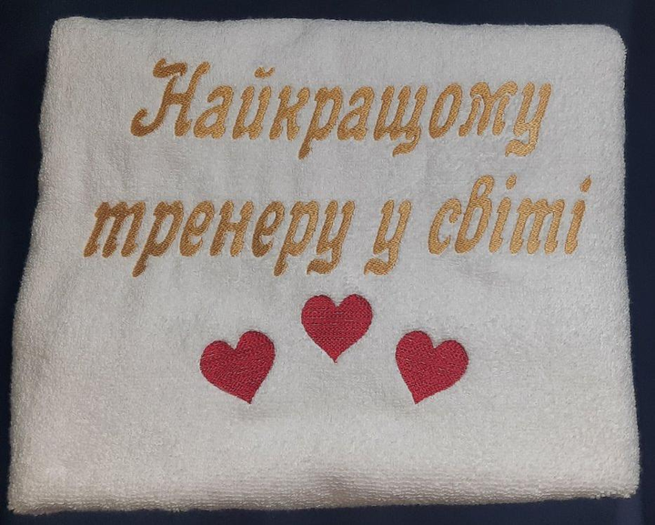 Рушник з вишивкою “Найкращому тренерові у світі” Подарунковий махровий, білий, можливе індивідуальне ім'я