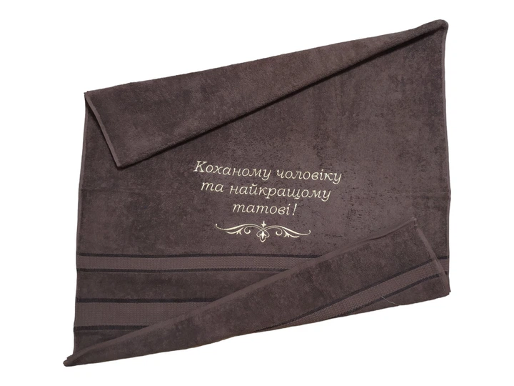Рушник з вишивкою махровий банний 70*140 темно - коричневий чоловікові татові ukr 00088