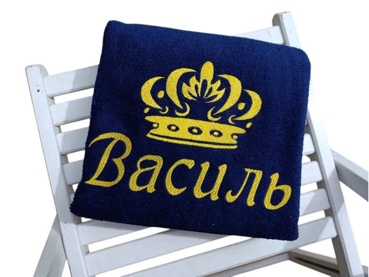 Рушник з іменною вишивкою махровий банний 70*140 темно - синій Василь 00032