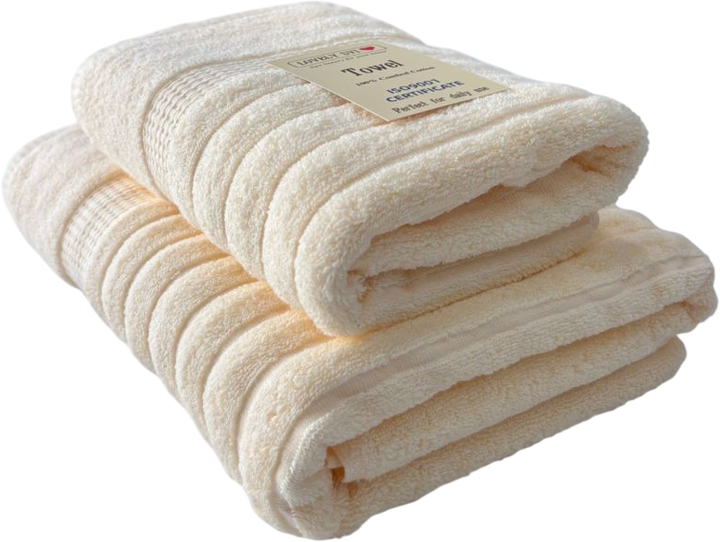 Набір 2 жаккардових рушників Lovely Svi Oxford Stripe в подарунковому пакеті 70х140+50х90 см Кремовий (6903711241073)