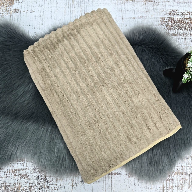 Рушник банний мікрофібра 140*70 см бежевий "Полосатик"