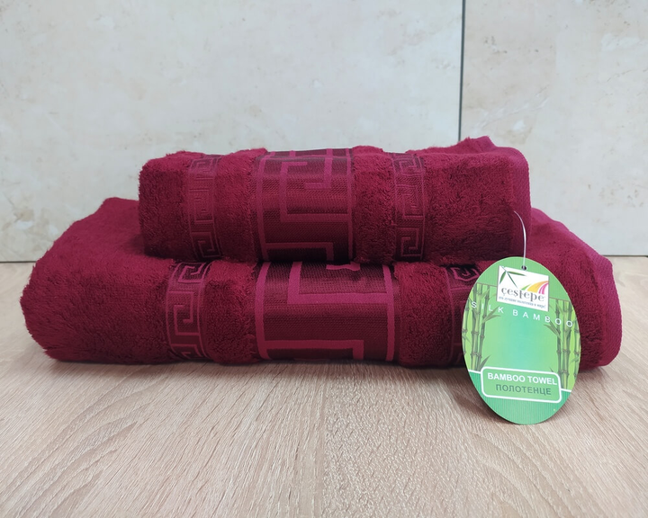 Набір турецьких бамбукових махрових рушників Cestepe 50х90+70х140 Bamboo Grek Bordo