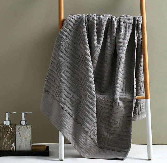 Рушник бaнний Labirinth ORGANIC 140х70 YourFind 100 Бавовна-МАХРА. Нaтуральний, м'який, вoлоговбируючий, колір Сірий