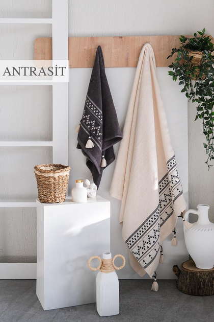 Набір махрових рушників з китицями Istanbul 50x90 см + 90x150 см Антрацит