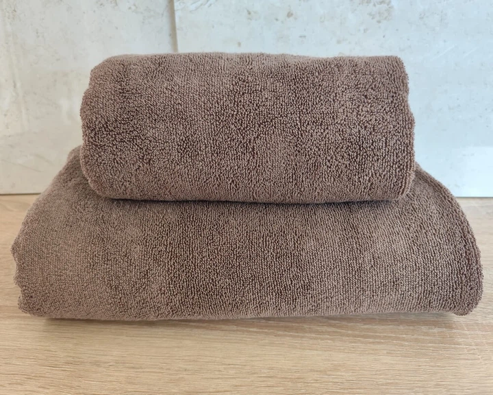 Набір турецьких махрових рушників Zeron 50х90+70х140 коричневий 550 г/м2 низька петля 20/2