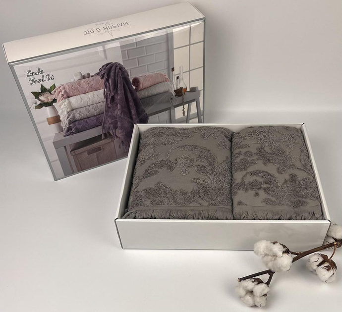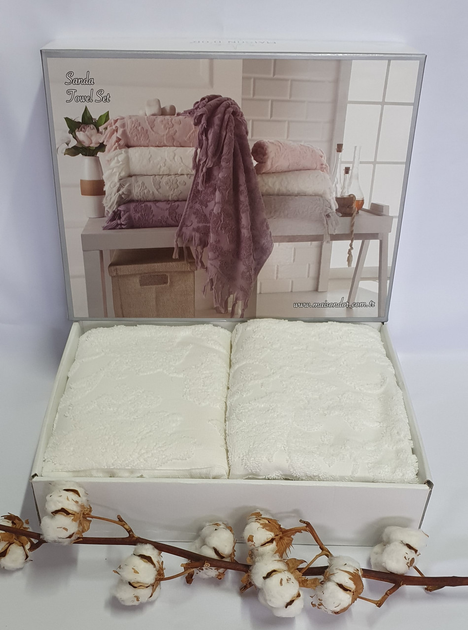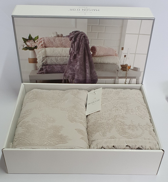 Подарунковий набір махрових рушників для обличчя 30х50 см + 50х90 см та тіла 140х70 см кремові + ароматичний спрей для дому