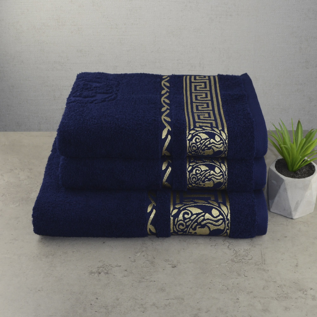 Комплект махрових рушників 3шт GM Textile 50х90см, 50х90см, 70х140см Caesar 450г / м2 (Темно-синій)