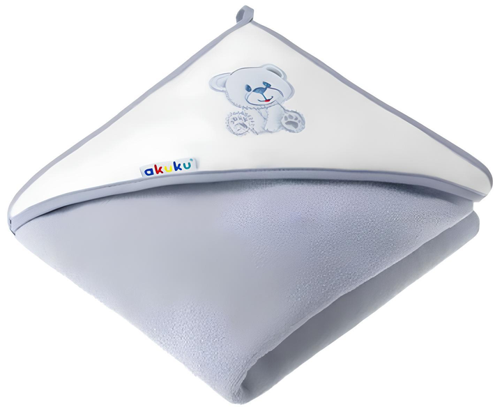 Рушник з капюшоном Akuku A1258 Ведмедик, сірий 100x100 см