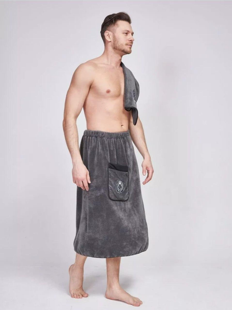 Набір для лазні Чоловічий кілт з кишенею та рушником 85х150 Сірий (Д-novo-m-sauna-0016)