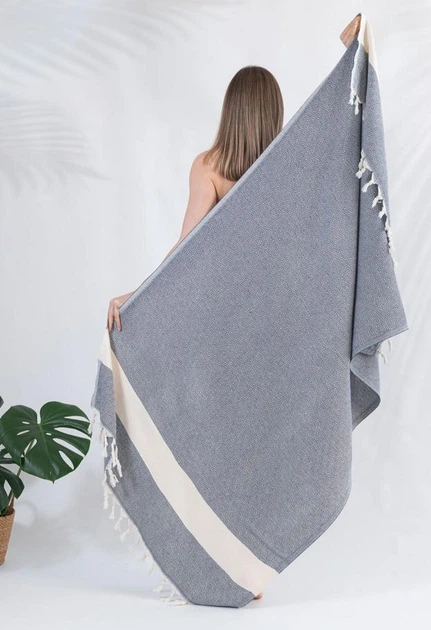 Пляжний рушник peshtemal 100х180 см великий м'який Pушник пештемаль для пляжу басейну хамаму сауни бані темно-синій