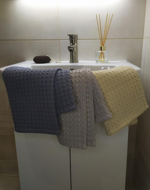 Набір 3 шт рушник вафельний, комплект для ванної кімнати, лазні, сауни, басейну, бані 70х45 см, 70х50 см, 75х55 см, синій гр