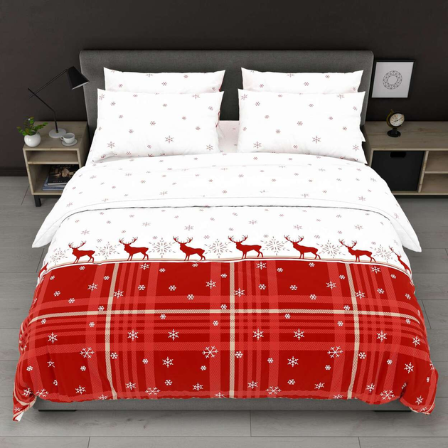 Постільна білизна новорічна півтораспальна біла з червоним Зимовий настрій Бязь Голд Ananasko 5179677