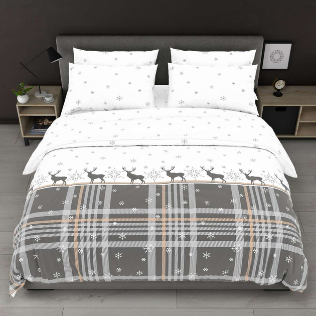 Постільна білизна новорічна півтораспальна сіро-біла Зимовий настрій Бязь Голд Ananasko 517967