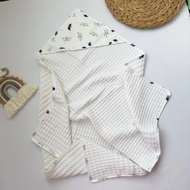 Кутик рушник вафельний з бавовною для новонароджених після купання 80/80 розмір білий Кораблик