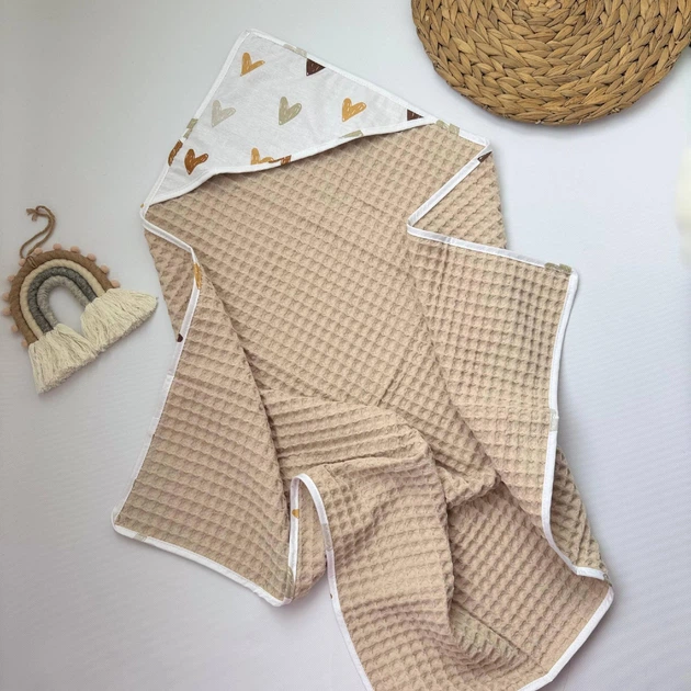 Кутник вафельний рушник з бавовною для новонароджених після купання 80/80 розмір світло коричневий Серця