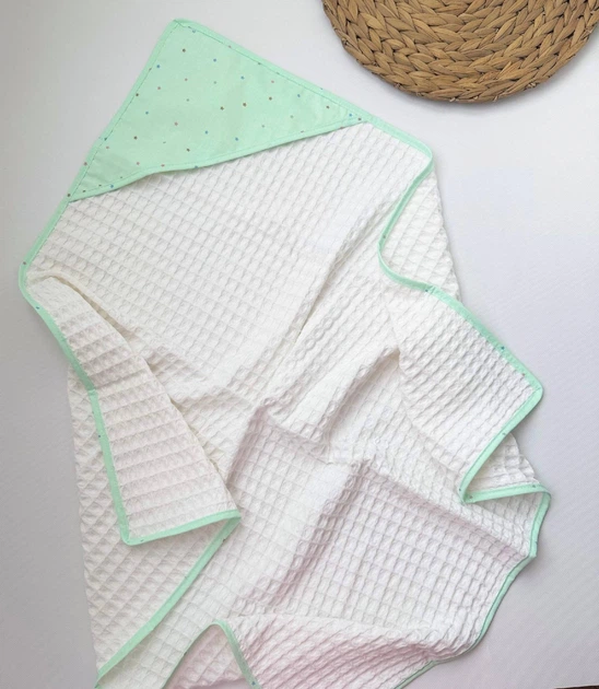 Кутик рушник вафельний з бавовною для новонароджених після купання 80/80 розмір білий з бірюзовим Зірки