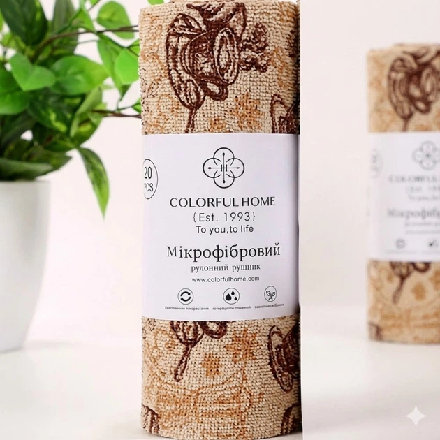 Серветки універсальні багаторазові в рулоні Мікрофібра 25х25 см Colorful Home SM5 (20 шт)