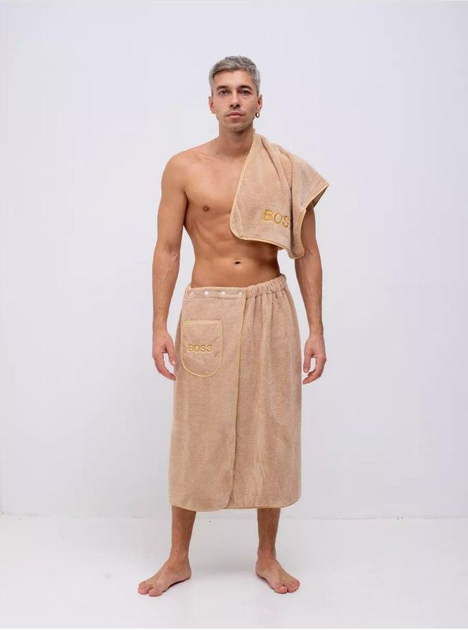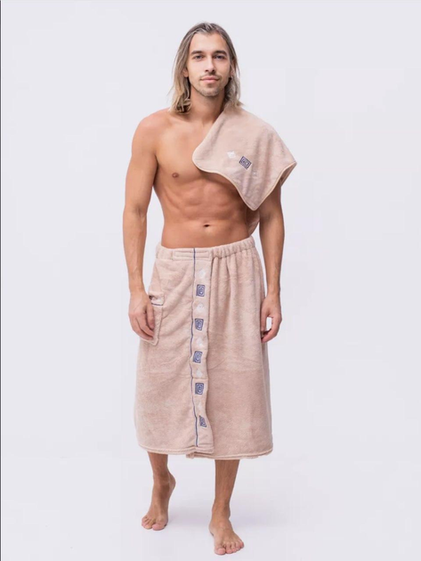 Банний комплект чоловічий з кишенею для лазні та сауни 85х150 Беж (П4К-novo-m-sauna-003)