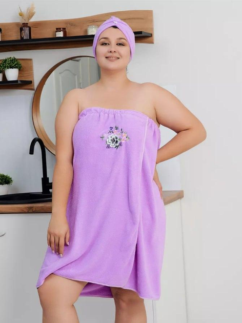Жіноча чалма з рушником із мікрофібри 80х140 Бузковий (П4К-novo-f-sauna-011)