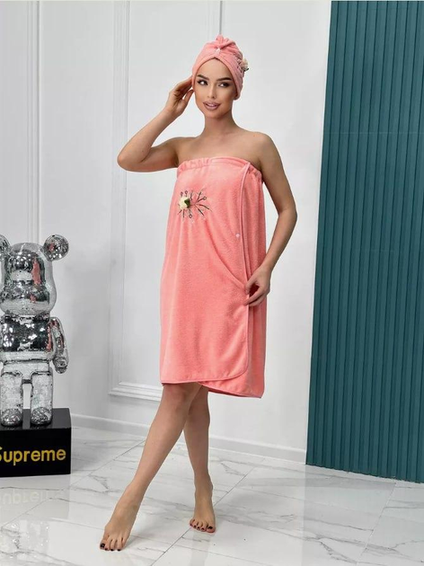 Жіноча чалма із рушником 80х140 Персиковий (П4К-novo-f-sauna-001)