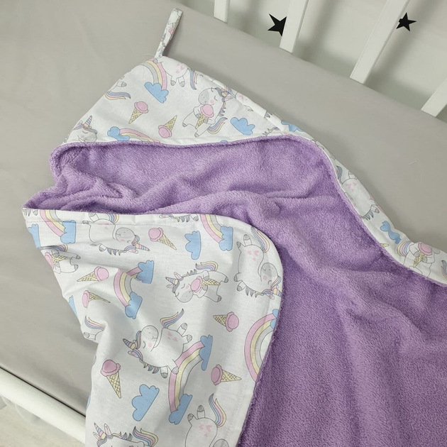 Дитячий рушник з куточком 100х100 см Oh My Kids "Unicorns" ліловий