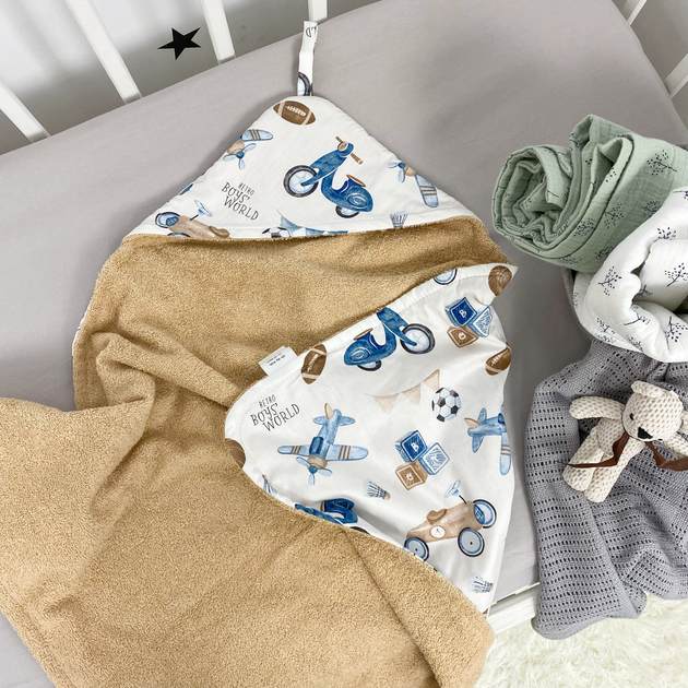 Дитячий махровий рушник 100х100 см Oh My Kids "Ретро машинки" бежевий