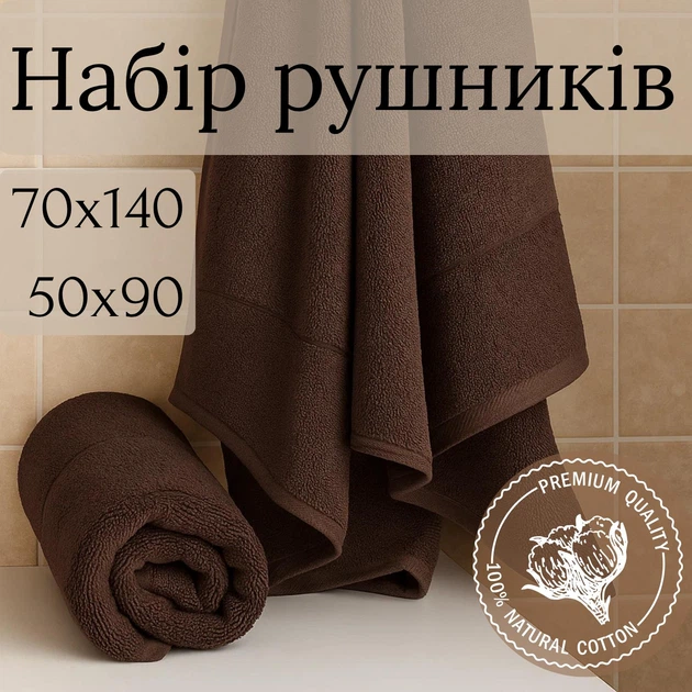 Набір подарунковий рушників махрових Банний 70х140 та для Обличчя/рук 50х90 см натуральний 100 Бавовна з рис ефектом коричне