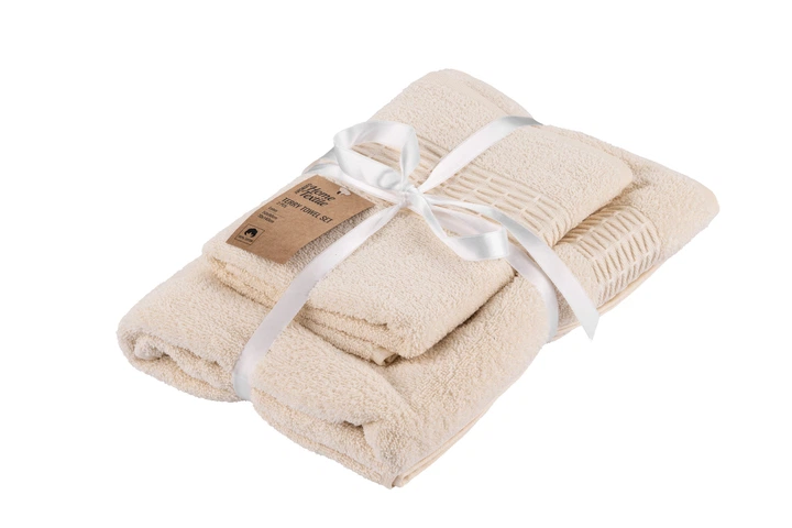 Набір подарунковий рушників махрових Банний 70х140 та для Обличчя/рук 50х90 см натуральний 100 Бавовна з рис ефектом бежеві