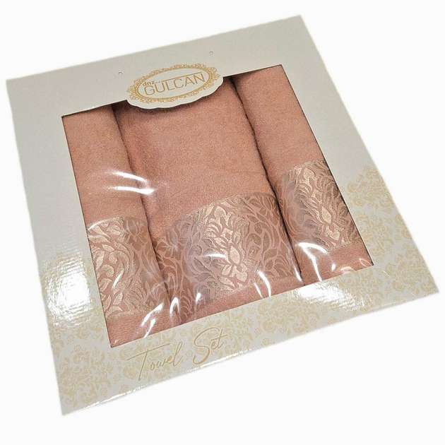 Подарунковий набір рушників Gulcan Flowers 3 шт Ніжно-рожевий