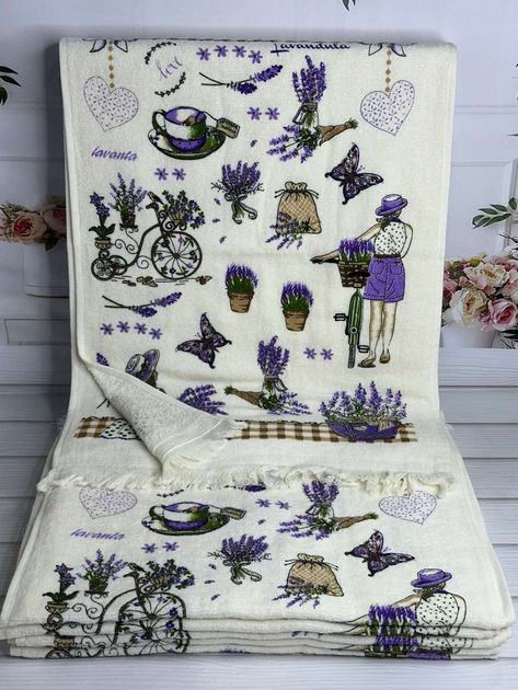 Набір рушників Maison d'or 2шт Roses Бамбук 50x100 Ekru-Lila