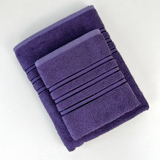 Набір махрових рушників для ванної Family Tradition 140х70 см + 90х50 см темно-фіолетовий Комфорт 2
