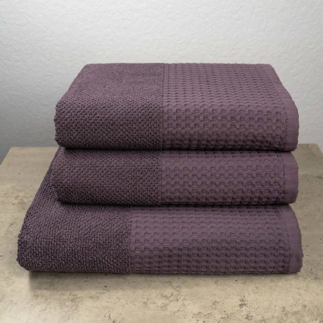 Комплект махрових рушників Вафельний Бордюр 3шт GM Textile 50х90см, 50х90см, 70х140см 500г/м2 (Виноград)