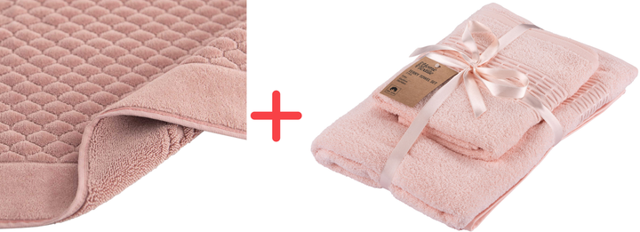 Набір Килимок у ванну кімнату Zwoltex Carlo 8851/6753 50х70 см Світло-рожевий + 2 махрові рушники Ardesto для ванної 50х90+7