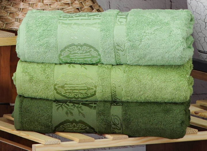 Набір турецьких бамбукових махрових рушників Zeron 3 штуки 15841 Aynali Agac Bamboo зелений 70х140